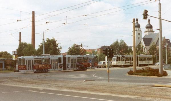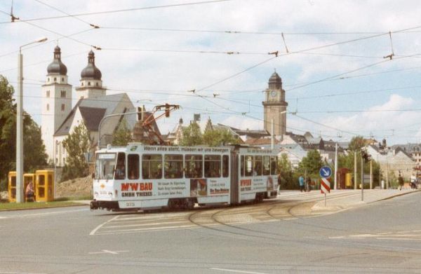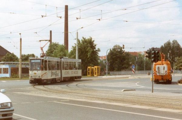 Verlassen der Haltestelle Neue Elsterbrücke. Damals