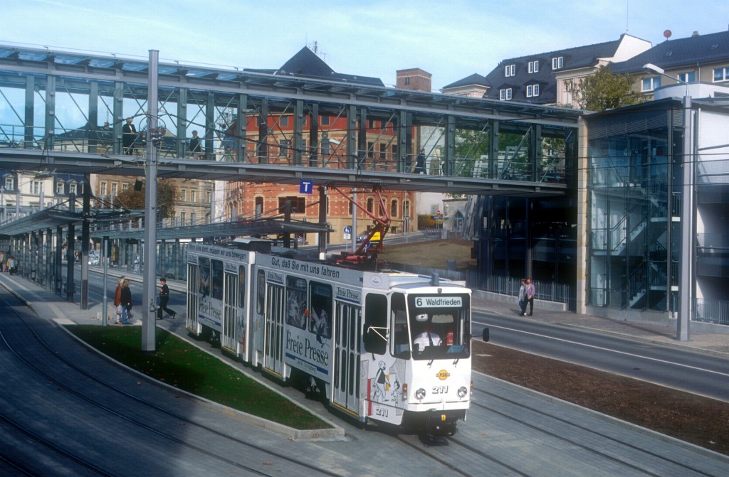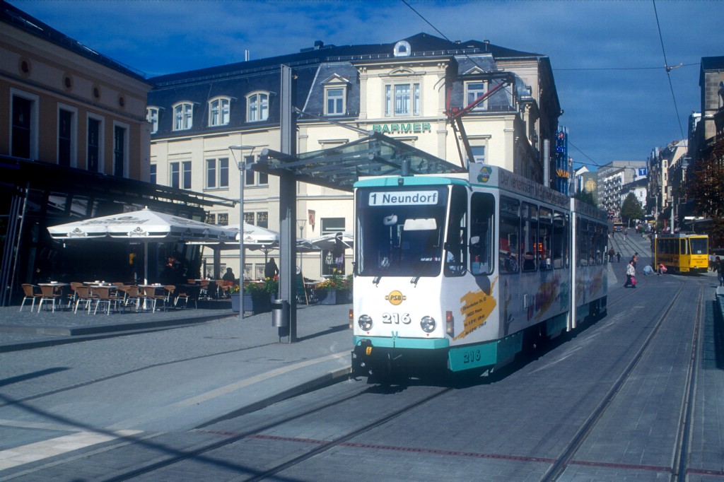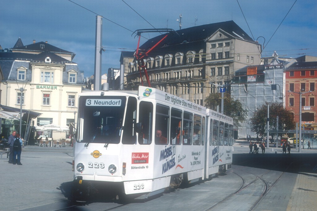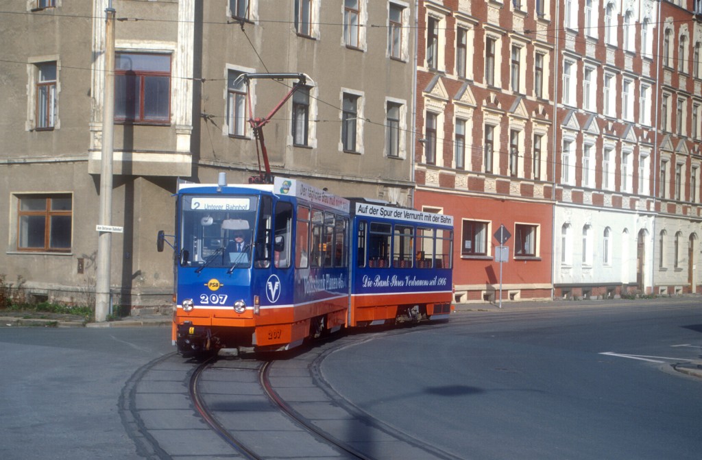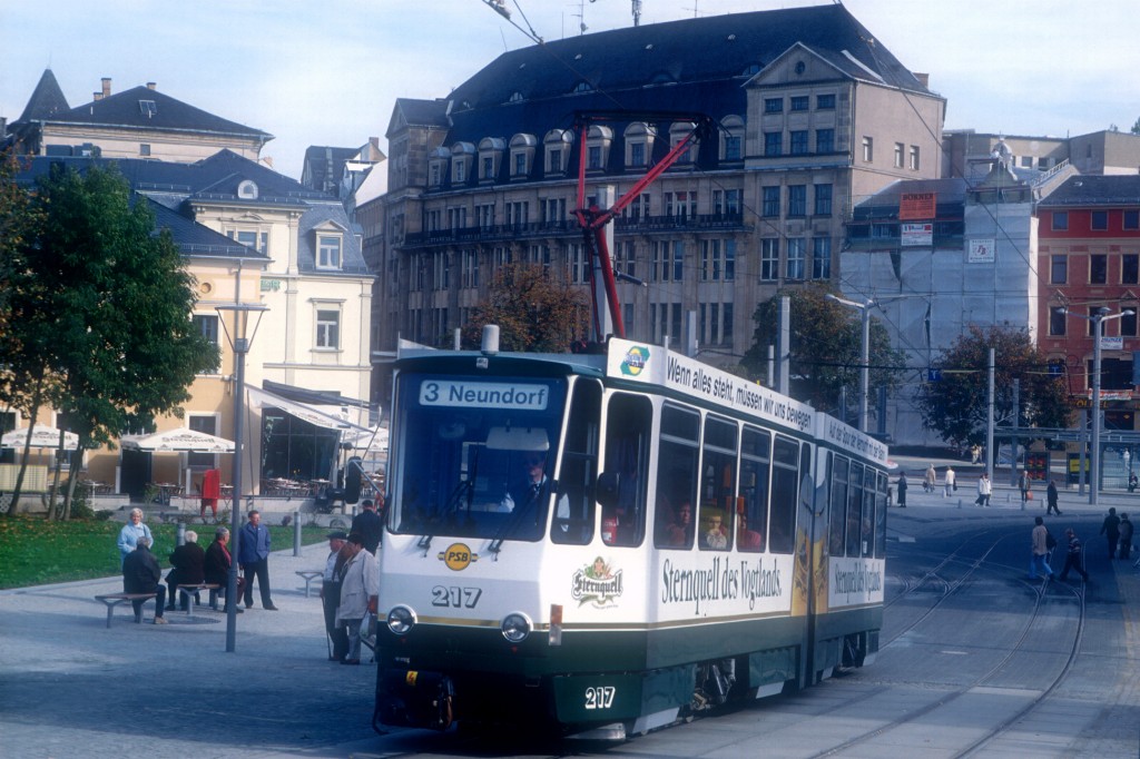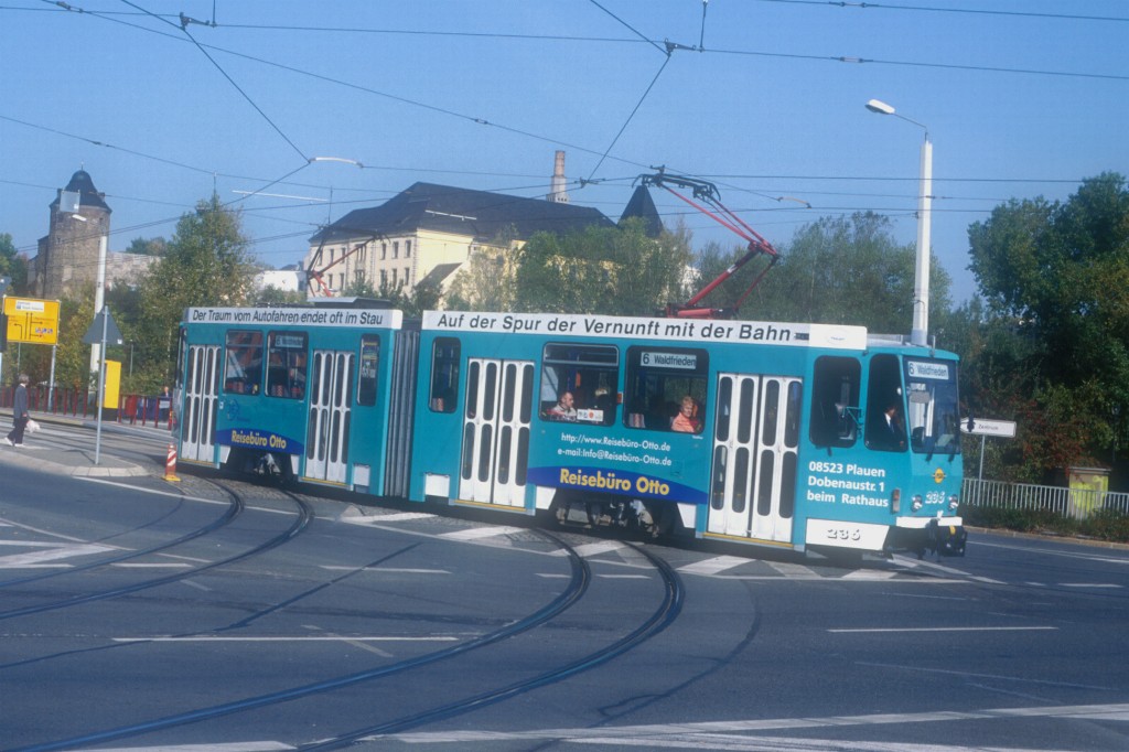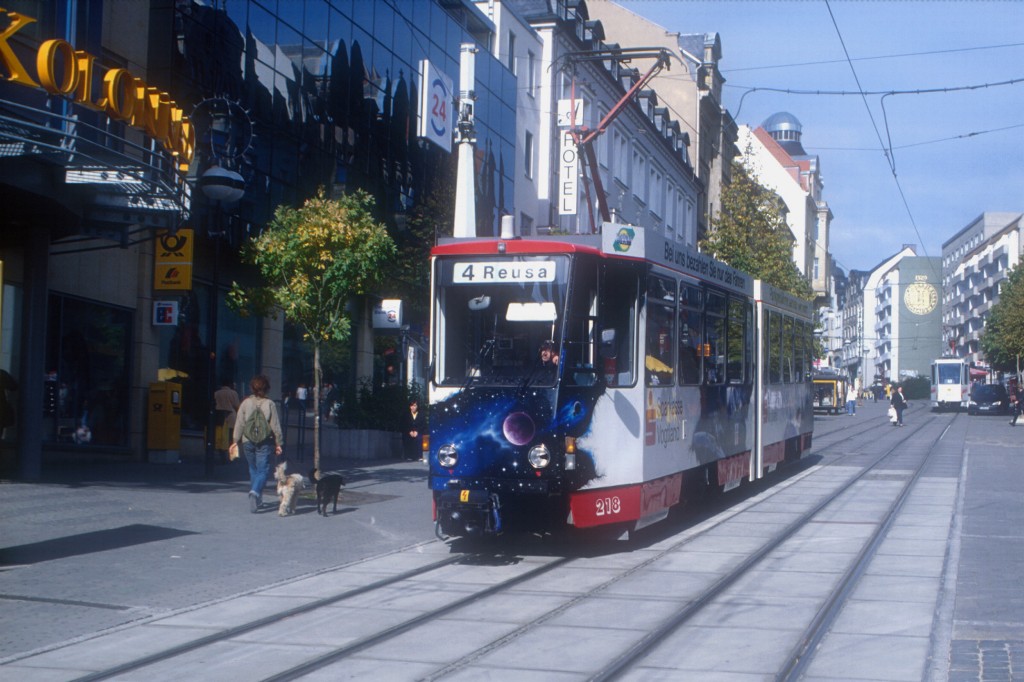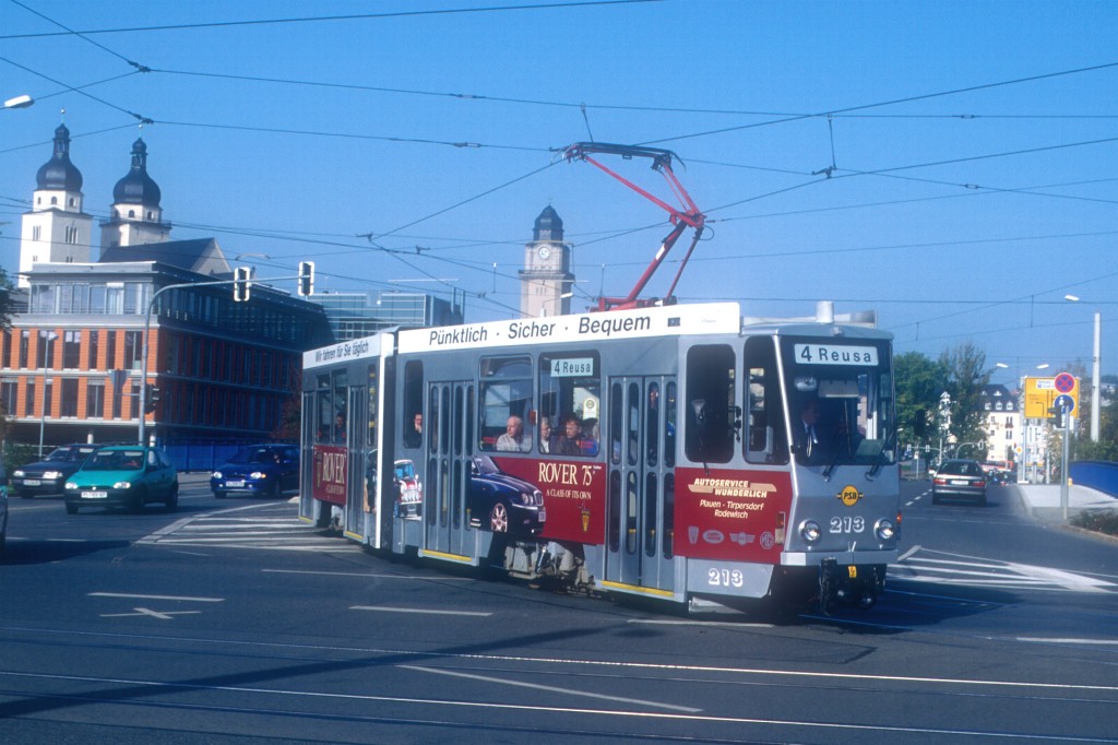 Tw 213 nach der Haltestelle Neue Elsterbrücke Richtung Reusa.