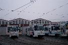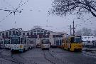 halb sieben, im Betriebshof Wiesenstraße: Wagenparade