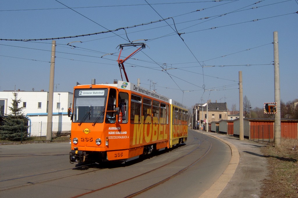 Linie 2 Richtung Oberer Bahnhof auf der Wiesenstraße. |