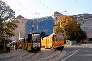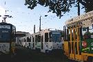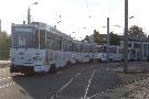 (H)Tw 215, HTw 79 + HBw 28 und Tw 232 (rechts) an der Haltestelle Neue Elsterbrücke. |