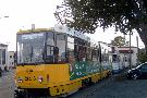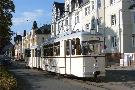 (H)Tw 215 mit Ziel "Betriebshof Wiesenstrasse". Hieran erkennt man auch, dass er - zumindest z.T. - historisch ist, denn er besitzt noch den alten Zielfilm. (Jetzt wird "Betriebshof Wiesenstraße" mit "ß" statt "ss" angezeigt, vgl. Bild mit Tw 221 im April 2003.) |