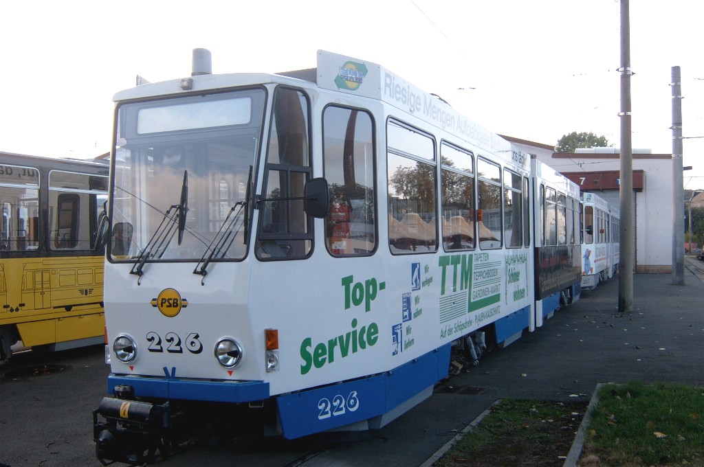 Tw 206 und Tw 226 + Tw 227 im Betriebshof Wiesenstraße. |