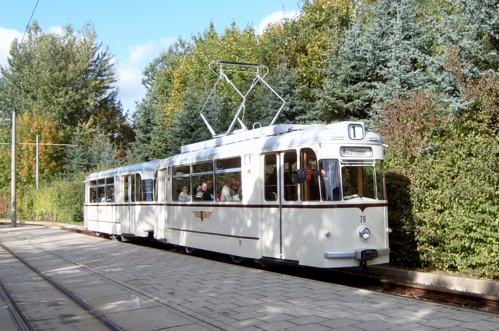 Waldfrieden", HTw 79 + HBw 28 und ATw 0202 an der Endhaltestelle
