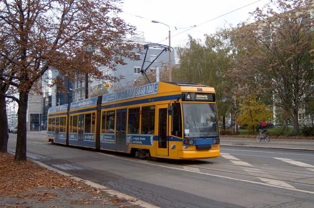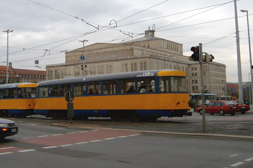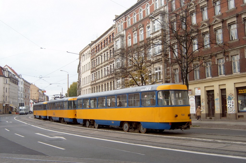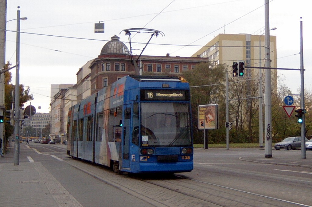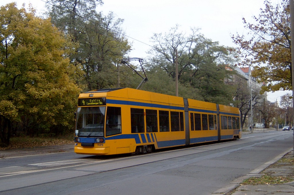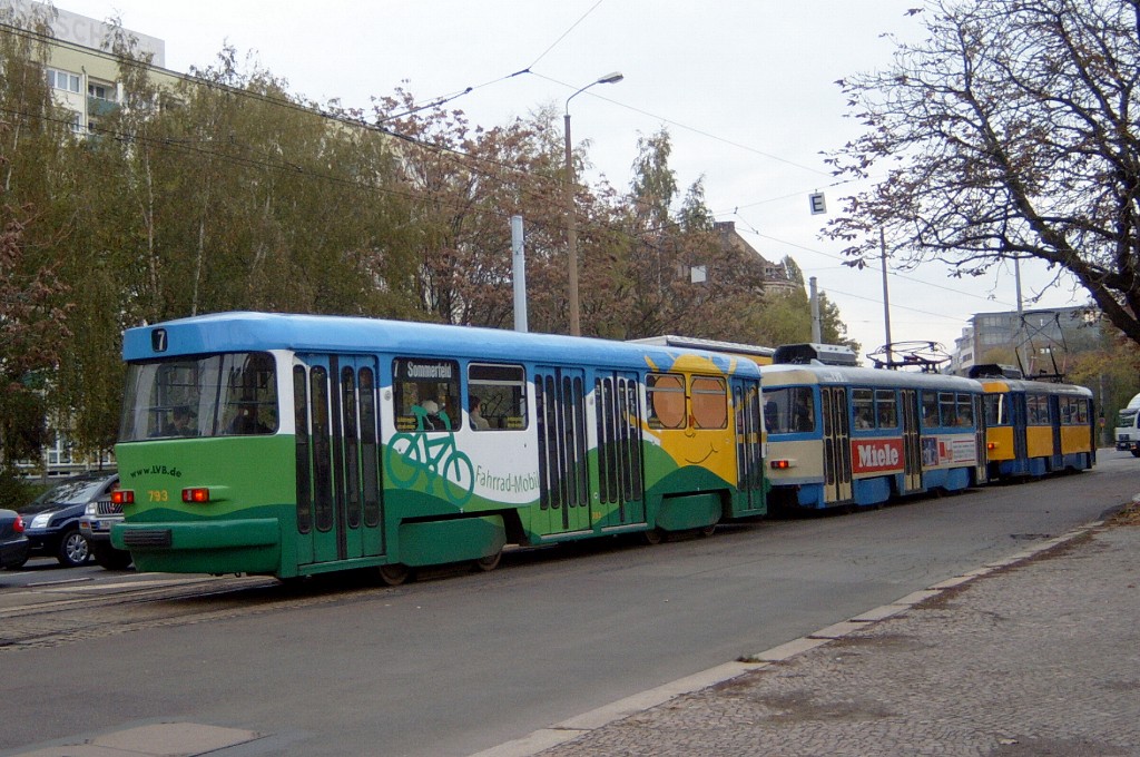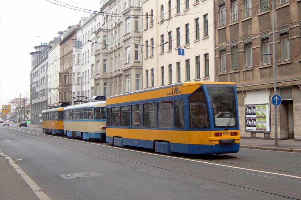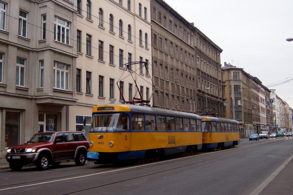 Am 29. Oktober 2003 machte ich eine Fototour durch Leipzig, auch wenn das Wetter nicht gerade das idealste war. Der Wagenpark der LVB (Leipziger Verkehrsbetriebe) umfasst Fahrzeuge der Typen T6A2/B6A2, T4D/B4D, T4D-M/B4D-M, NB4 und NGT8 sowie einige Sonder- und Arbeitsfahrzeuge. Die NGT8 tragen alle einen Namen. (November 2003)