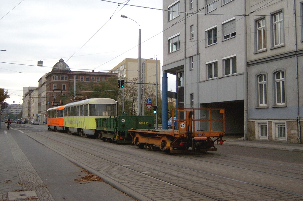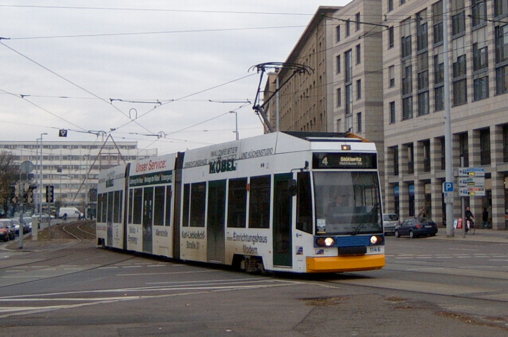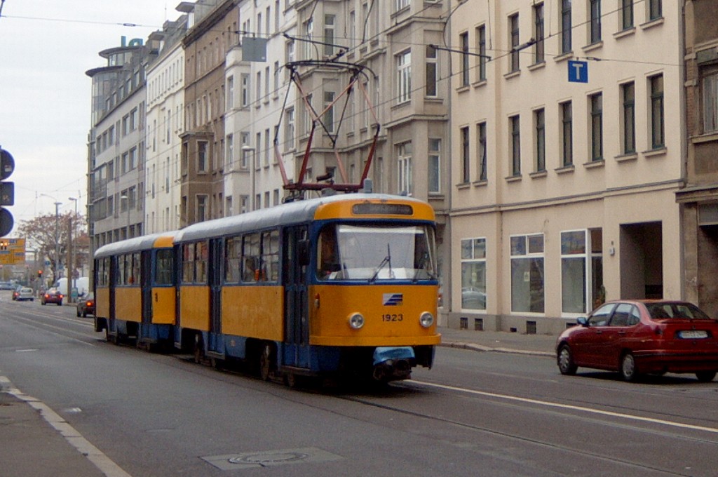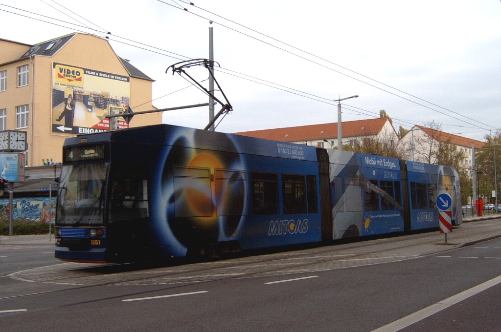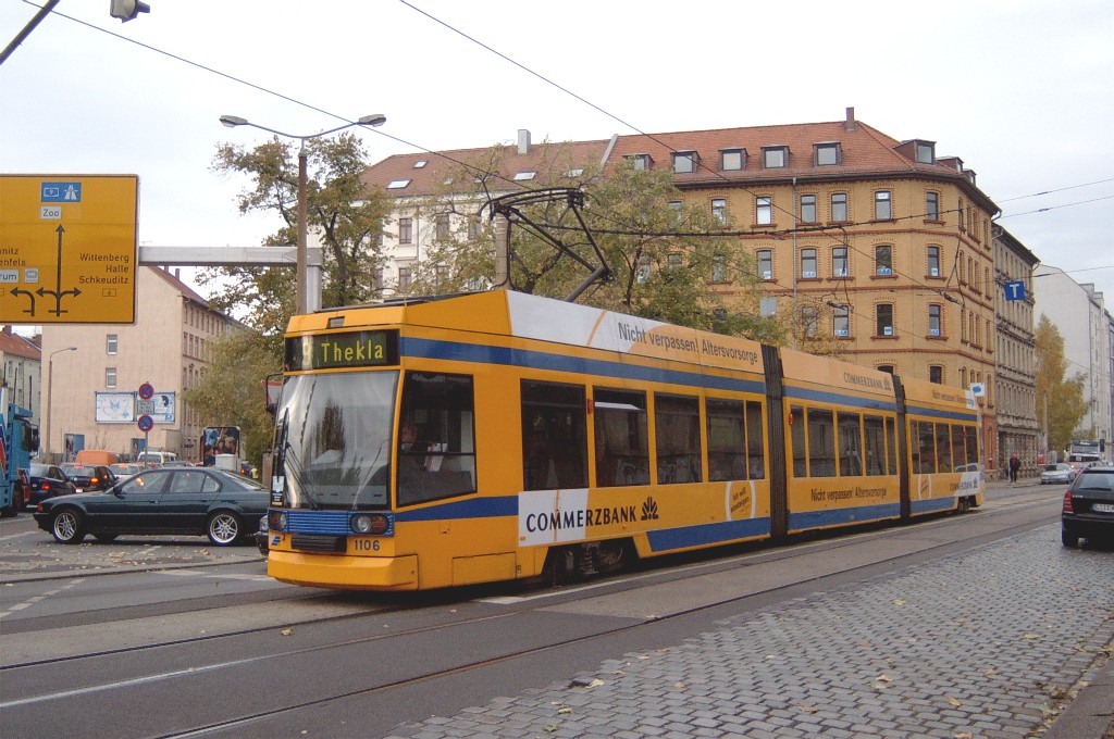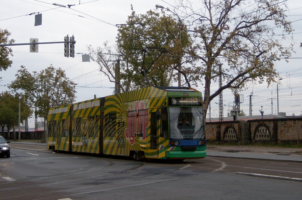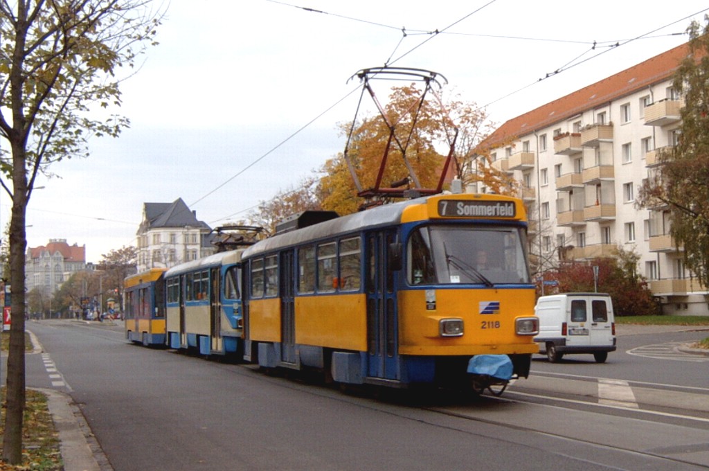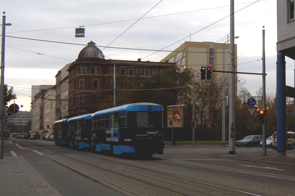 Am 29. Oktober 2003 machte ich eine Fototour durch Leipzig, auch wenn das Wetter nicht gerade das idealste war. Der Wagenpark der LVB (Leipziger Verkehrsbetriebe) umfasst Fahrzeuge der Typen T6A2/B6A2, T4D/B4D, T4D-M/B4D-M, NB4 und NGT8 sowie einige Sonder- und Arbeitsfahrzeuge. Die NGT8 tragen alle einen Namen. (November 2003)