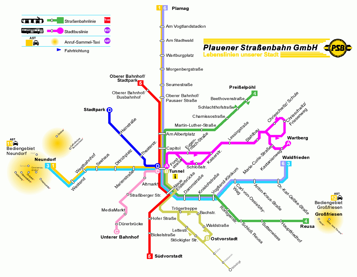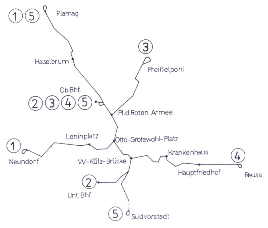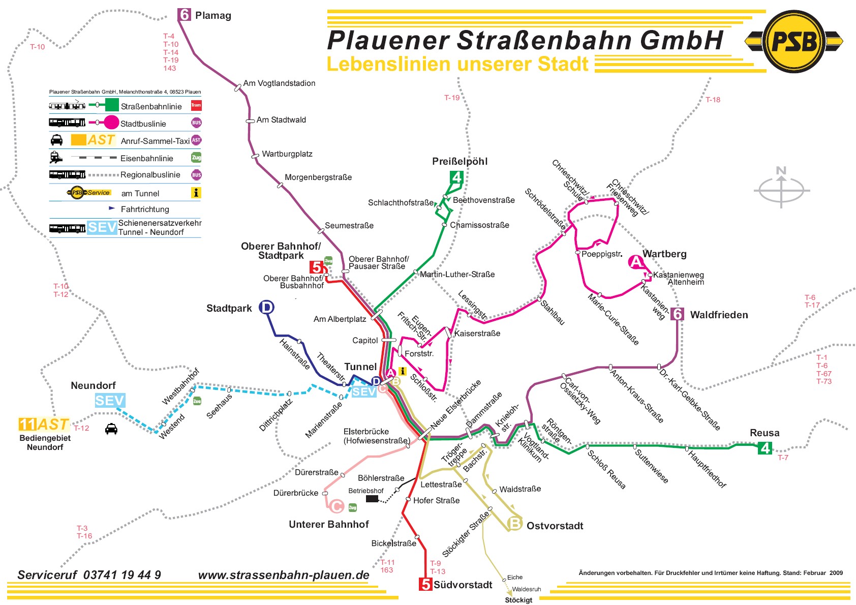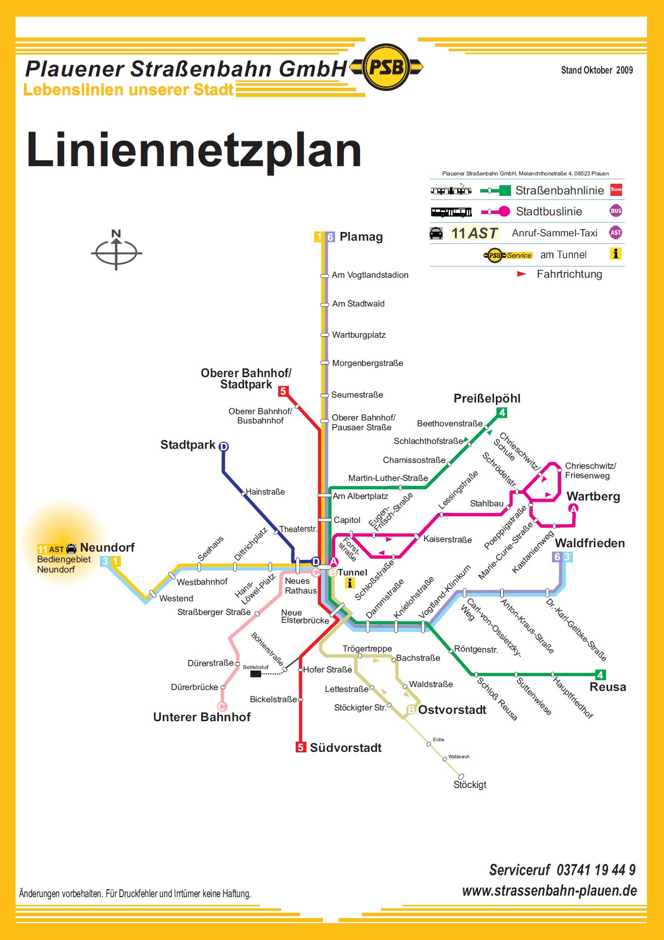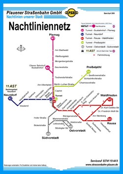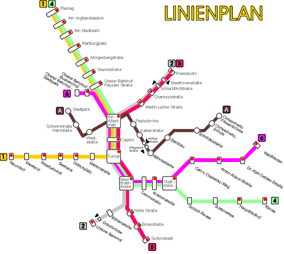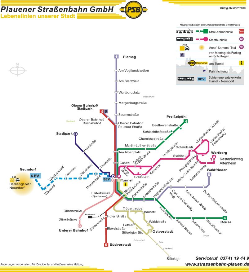 Tagesliniennetzplan ab 01.04.2008 (Rekonstruktion Neundorfer Straße; Nachtnetz s.u.)