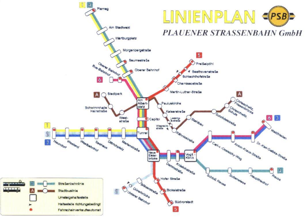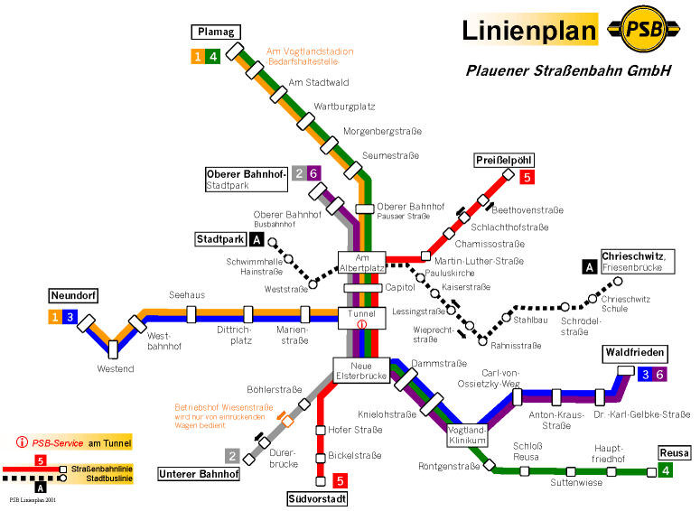 Linienplan 2000/01 (während der Bauarbeiten am Tunnel, Stadt-Galerie-Bau)