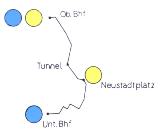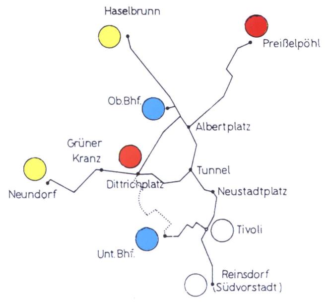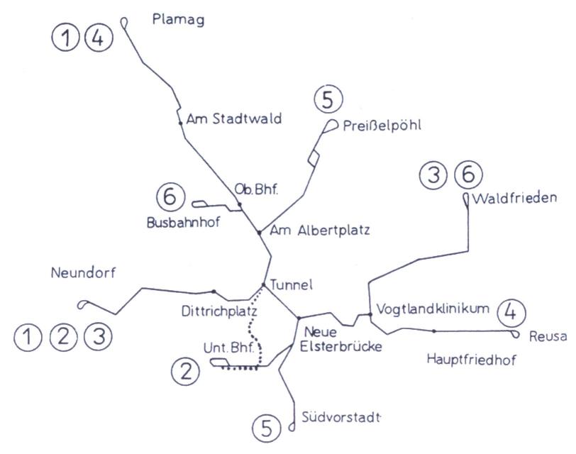 Punktierte Linie: geplante Linie Dittrichplatz - Unterer Bahnhof