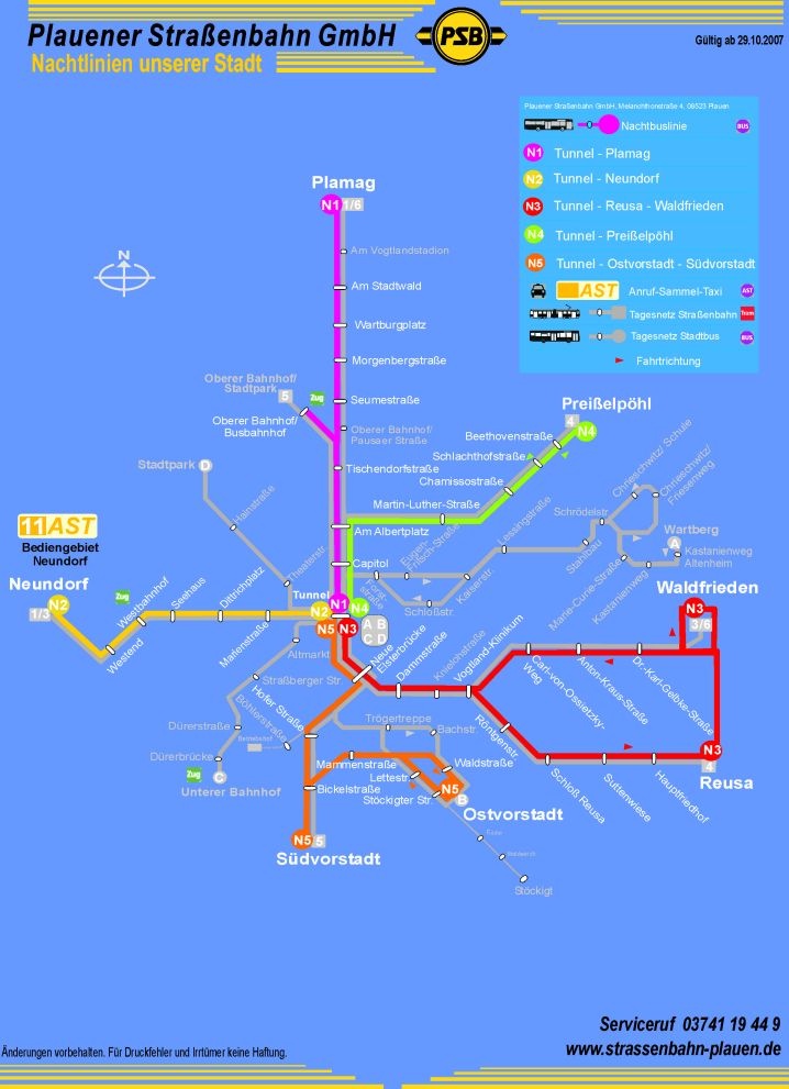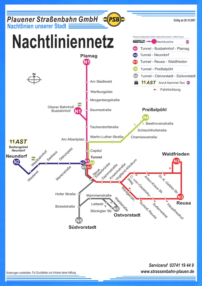 Nachtliniennetzplan ab 05.11.2007 (Tagesliniennetz s.u.) - bis 31.03.2008