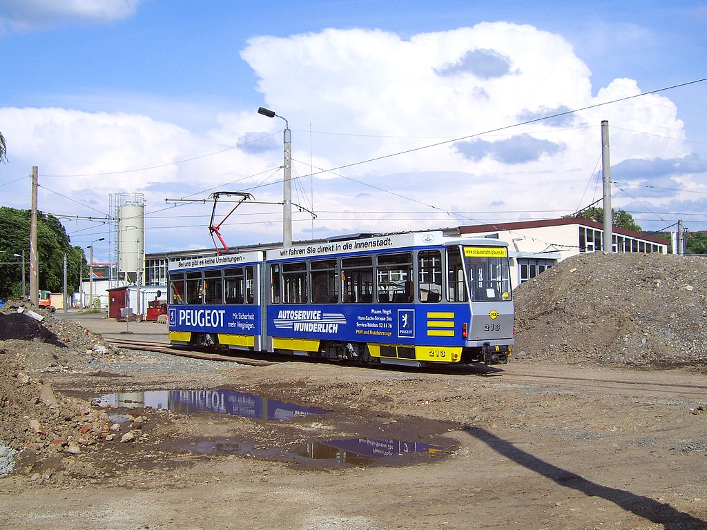 09.09.2007 | Gestern Nachmittag (08.09.) kam es kurzzeitig zu Verzögerungen im Straßenbahnverkehr von und zur Plamag. Tw 218 hatte einen Defekt erlitten und konnte deswegen nur mühsam die Strecke räumen. | |