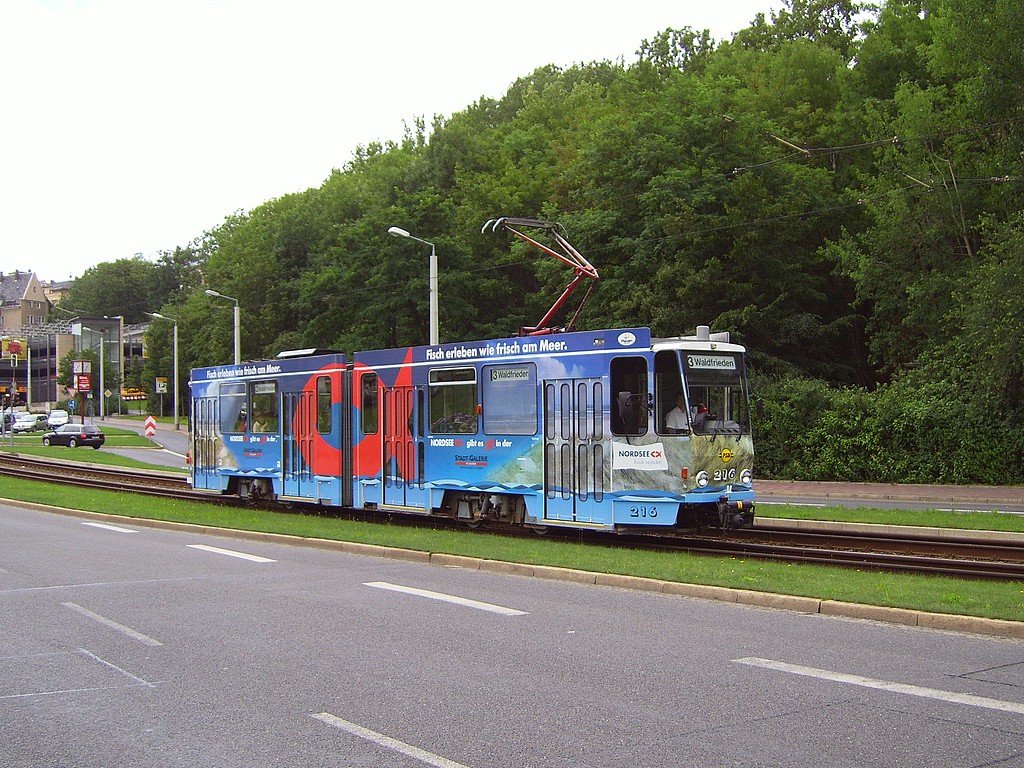 14.10.2007 | Vorgestern (12.10.) kam es aufgrund einer Demonstration auf der Bahnhofstraße ab kurz nach 15:00 Uhr zu einer Unterbrechung des Straßenbahnverkehrs in Richtung Preißelpöhl, Oberer Bahnhof und Plamag. Die Störung dauerte laut Medienberichten bis nach 17:00 Uhr an. | |