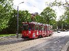 An Tw 237 und Tw 232, die für die Sternquell-Brauerei werben, wurden nun drei rote Banner je Wagen mit dem Hinweis auf das 150-jährige Bestehen der Braue- rei angebracht. Tw 232 erhielt die Banner im Rahmen einer Neubeklebung nach einem Graffitischaden von Anfang März. |