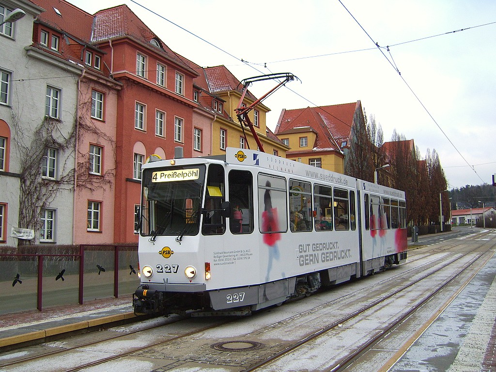 Tw 227 Richtung Stadtzentrum an der Haltestelle Röntgenstraße - 15.12.2007. |