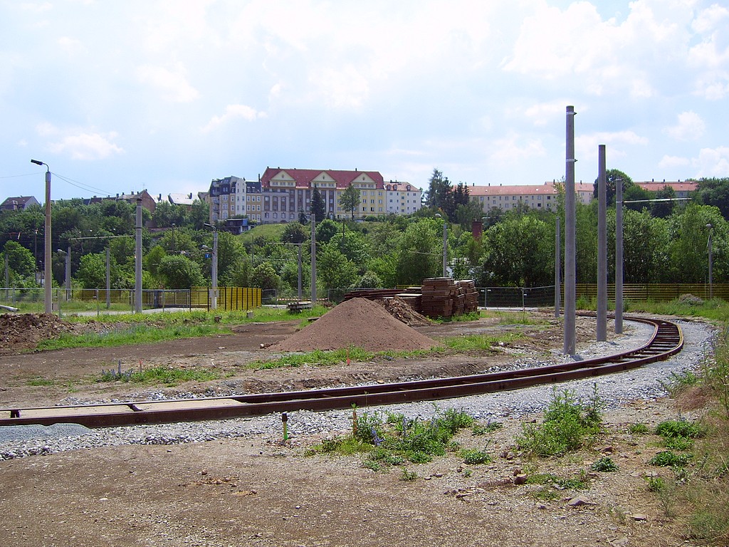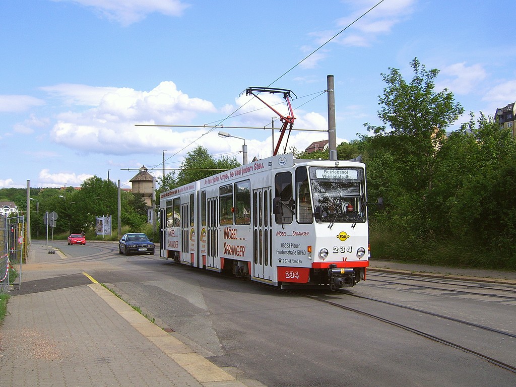 Bild 1: Tw 234 am Anfang von Plauens neusten 150 Metern Gleis - hier auf der