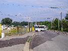 Die im Betriebshof Wiesenstraße neu errichtete Einfahrt wird seit Mitte des Mo- nats im täglichen Betrieb genutzt. An der Stelle des alten Einfahrtsgleises klafft inzwischen eine Baugrube, denn der Platz wird zukünftig von der neuen Wagen- halle in Anspruch genommen. |
