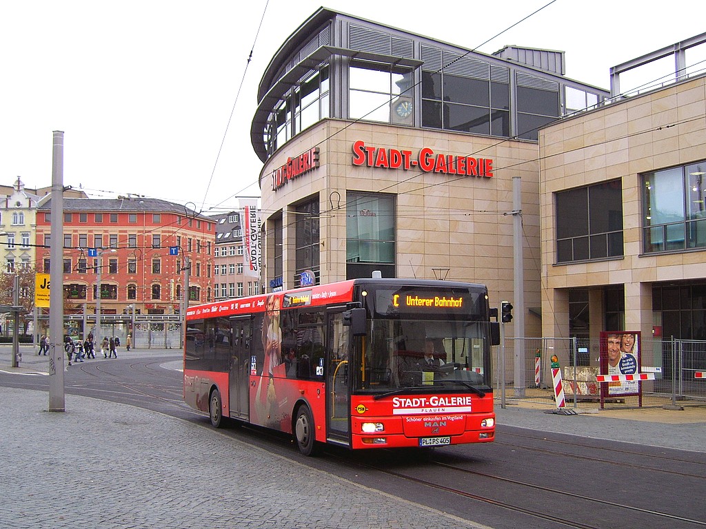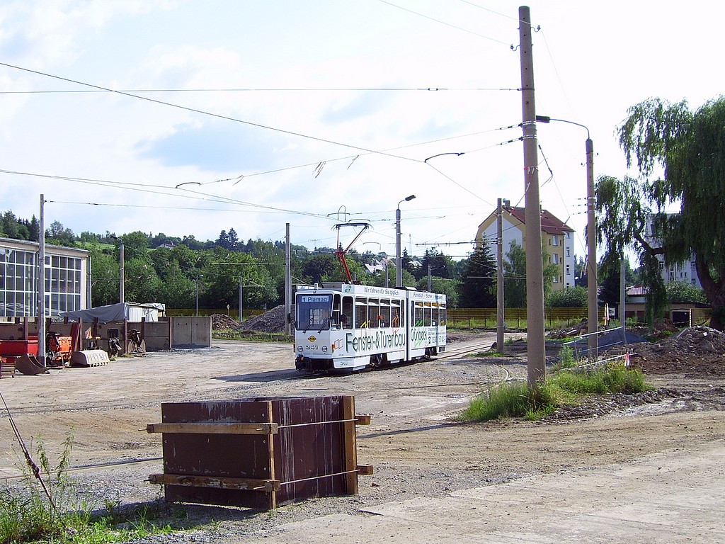11.11.2007 | Dieses Wochenende wurde zum letzten Mal im Zuge der Bauarbeiten an der Eisenbahnbrücke über die Pausaer Straße der Streckenabschnitt Albertplatz - Plamag im Schienenersatzverkehr bedient. Die Linien 1 und 6 fuhren wie immer im betroffenen Zeitraum zum Oberen Bahnhof. Auch sonst waren nur die üblichen Abweichungen zu verzeichnen. Der SEV wurde durch den POB gefahren. | |