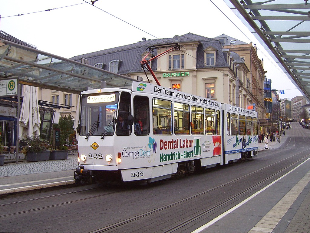 Tw 242 hält an der Zentralhaltestelle Tunnel - 02.11.2007. |