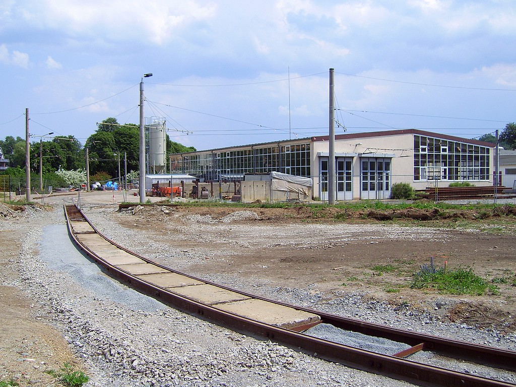 Derzeit wird u.a. eine provisorische Einfahrt - etwa 30 Meter weiter in Richtung Unterer Bahnhof als das bisherige Zufahrtsgleis - auf dem vor einiger Zeit erwor- benen Nachbargrundstück errichtet, um Baufreiheit für die neue Wagenhalle zu schaffen. Aus demselben Grund wurde auch das lange Abstellgleis an der Wie- senstraße auf ein Drittel der bisherigen Länge gekürzt. Außerdem werden zur Zeit noch verschiedene andere Arbeiten auf dem gesamten Gelände durchgeführt. |