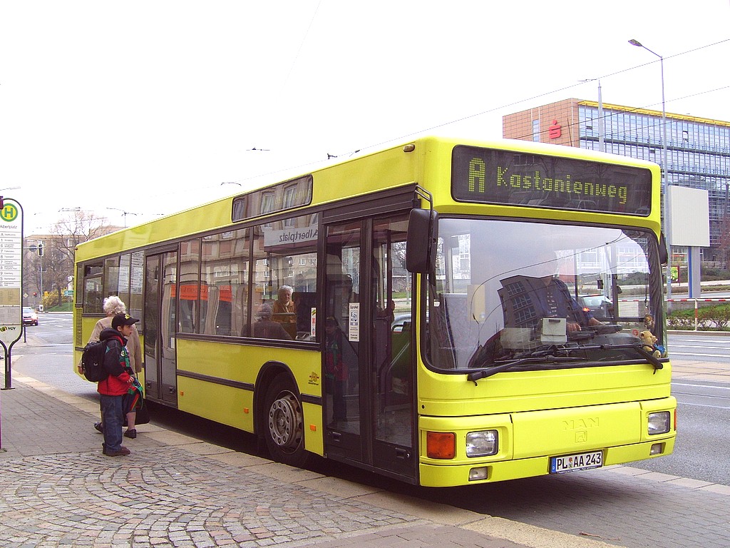 PL-AA 243 an der Bushaltestelle Albertplatz - 03.04.2007. |