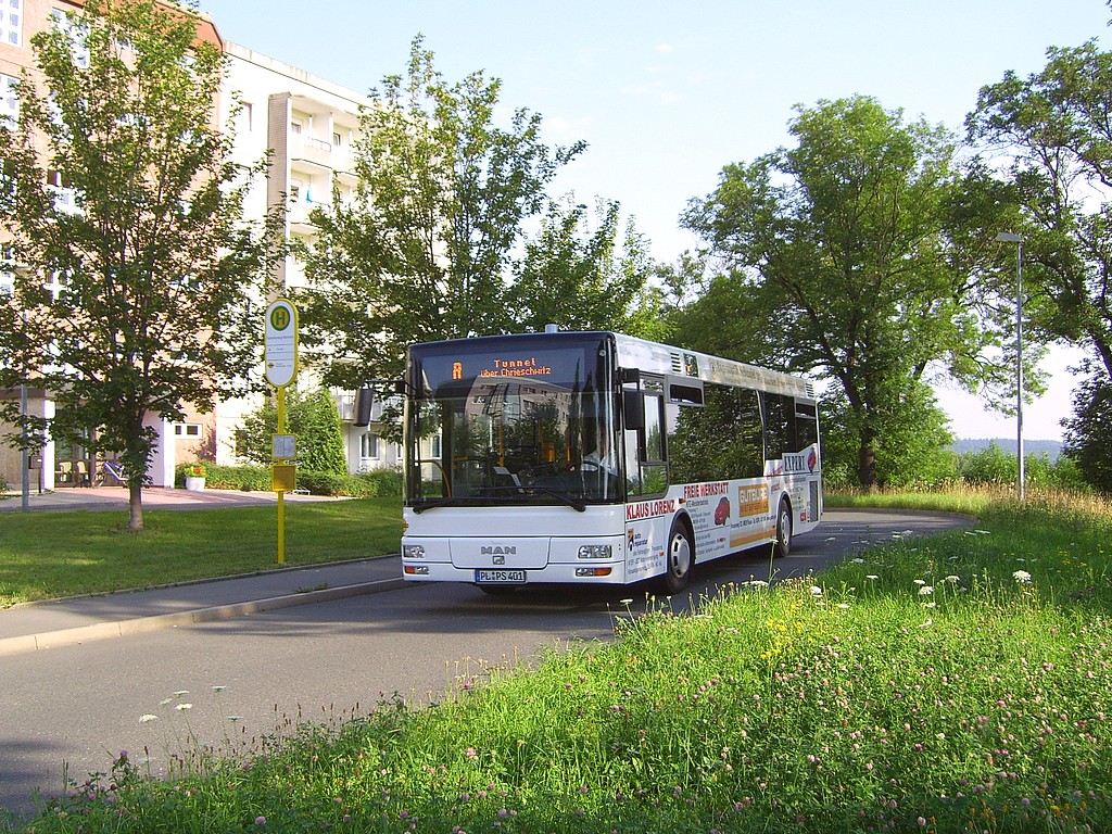 Noch bis zum Ende des Schuljahres wird man an Schultagen auf Linie A auch Busse des POB antreffen, da dieser die zusätzlichen Fahrten für Schüler der Grundschule "Karl Marx", die zur Zeit noch in der ehemaligen Albert-Schweitzer- Schule im Chrieschwitzer Hang untergebracht ist, im Auftrag der PSB durchführt. Dabei wird auf dem alten Linienweg der Linie A über den Albertplatz von/zum Wartberg gefahren. Die Busse schildern "Kastanienweg". Alt-Chrieschwitz wird bei diesen Fahrten generell nicht bedient. |