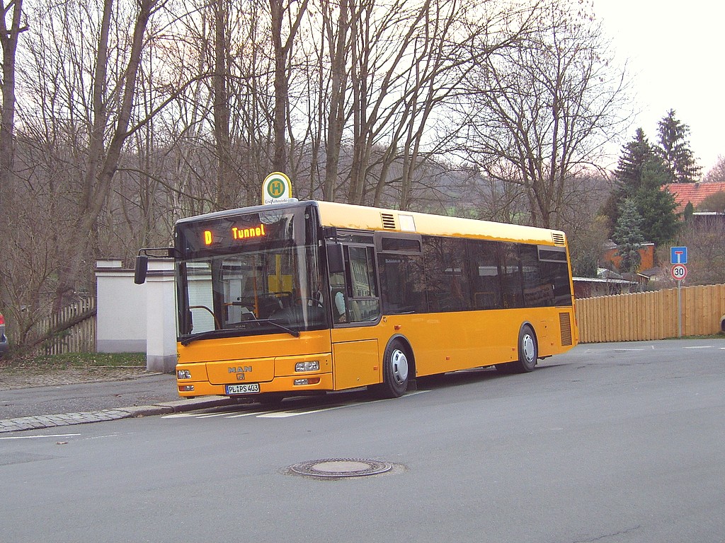 11.12.2007 | Mit dem Fahrplanwechsel beim Zugverkehr trat gestern auch bei der PSB eine Fahrplanänderung in Kraft. Die erste Fahrt der Stadtbuslinie C ab Tunnel ist von wochentags 05:04 Uhr um 3 Minuten auf 05:01 Uhr vorverlegt worden (Ankunftszeit Unterer Bahnhof jetzt 05:07 Uhr). Man reagierte damit auf eine Änderung der Abfahrtszeit der Vogtlandbahn (VB4 nach Gera Hbf), welche nun ebenfalls 3 Minu- ten eher, 05:10 Uhr ab Unterer Bahnhof, verkehrt. | |