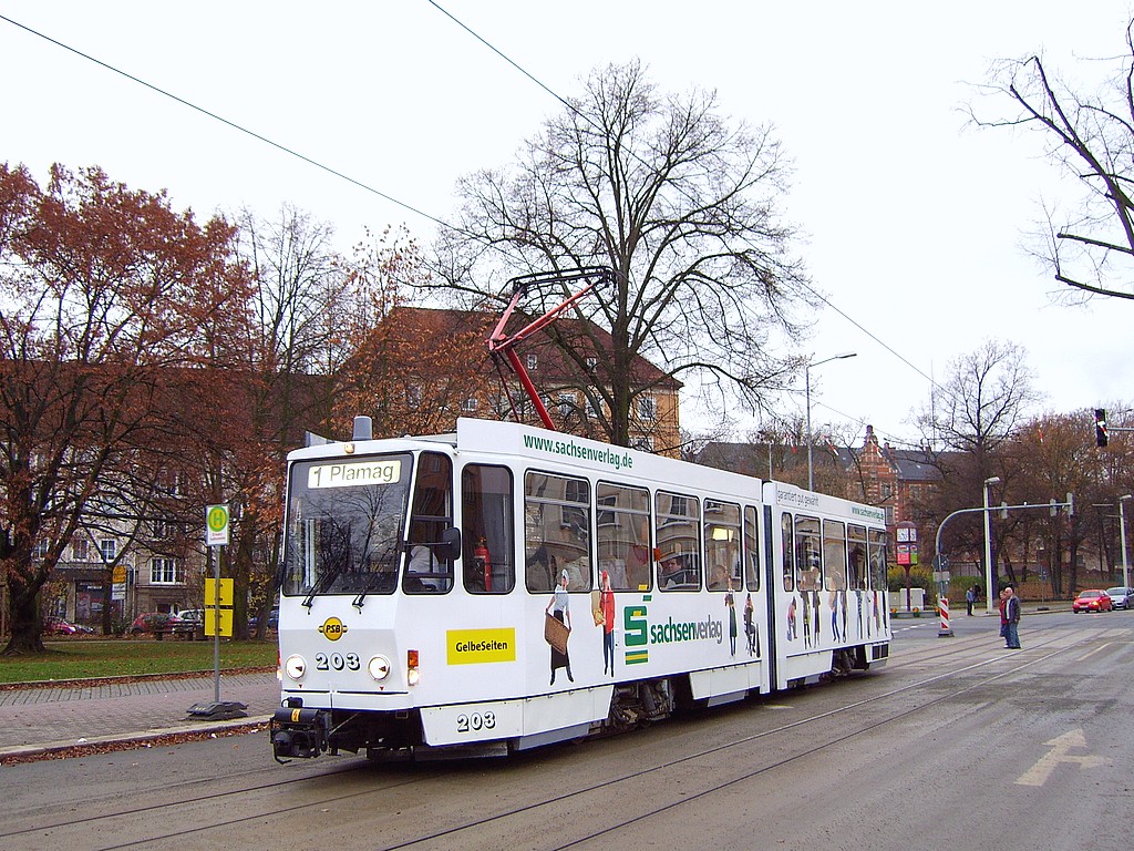 Tw 203 ist nun mit Werbung für den Sachsenverlag (Gelbe Seiten) im Einsatz. |