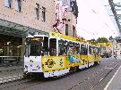 mit passendem Schild versehene Tw 216 und HTw 21 am Rathaus
