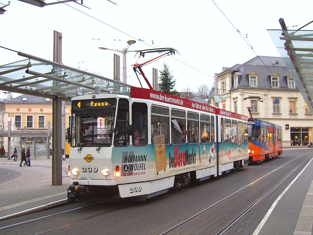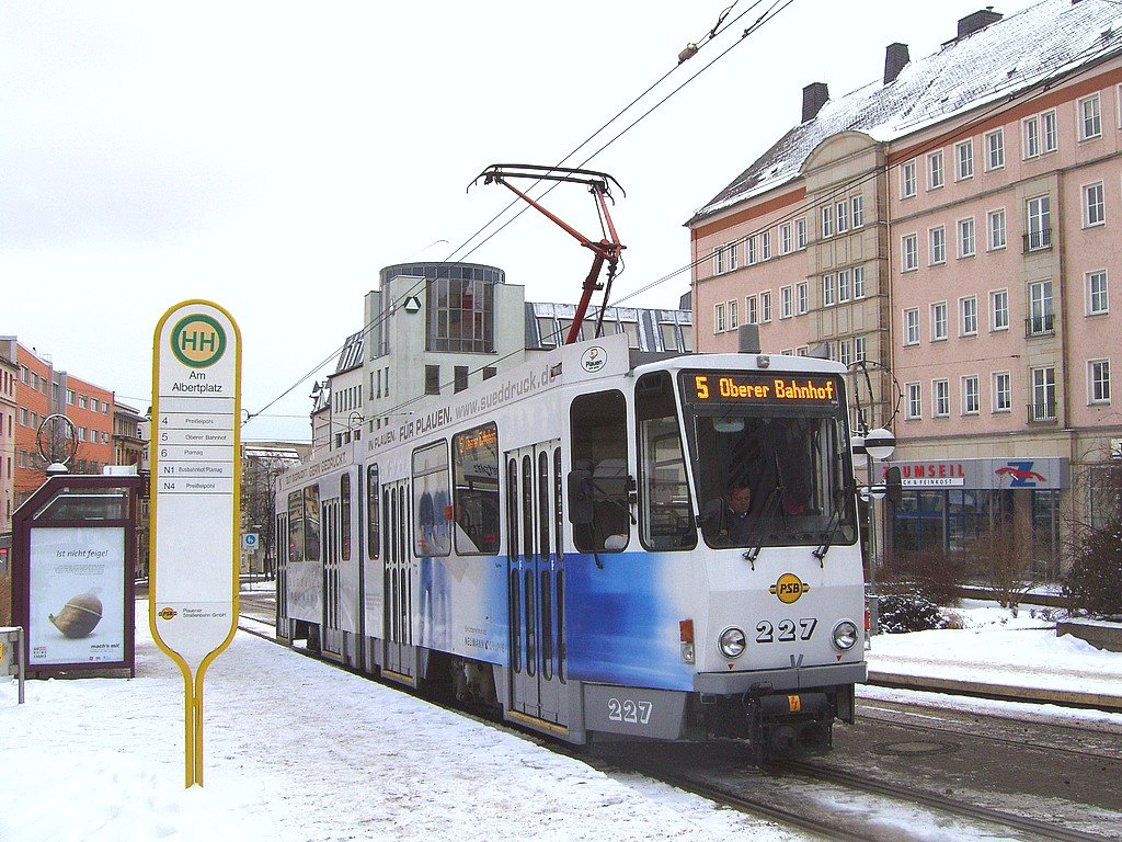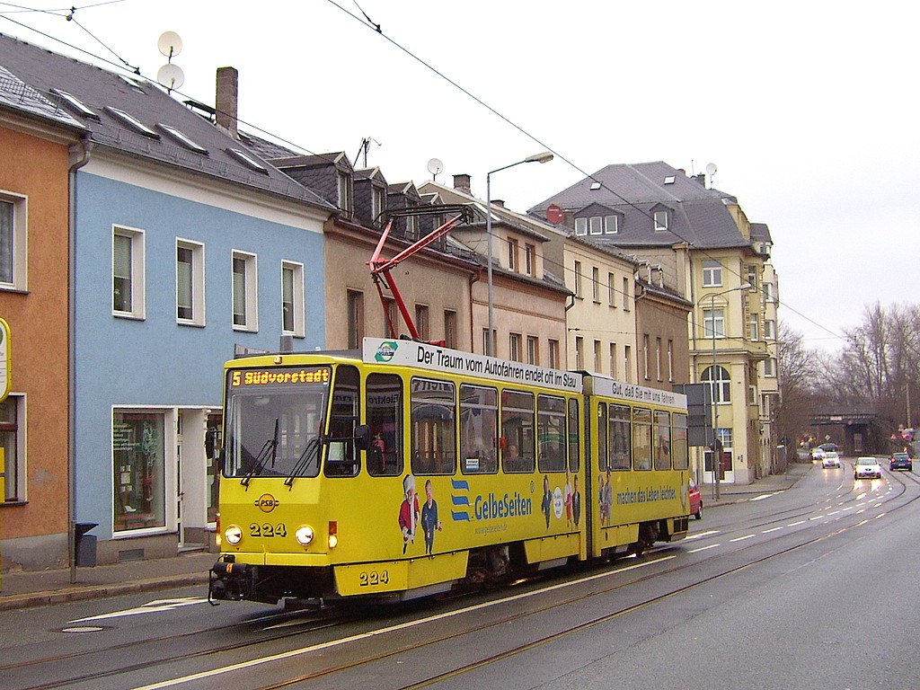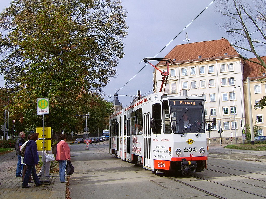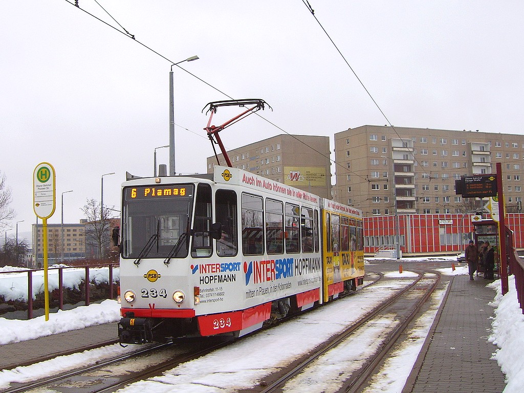 Tw 234 an der Haltestelle Oberer Bahnhof/Pausaer Straße - 21.02.2009. |