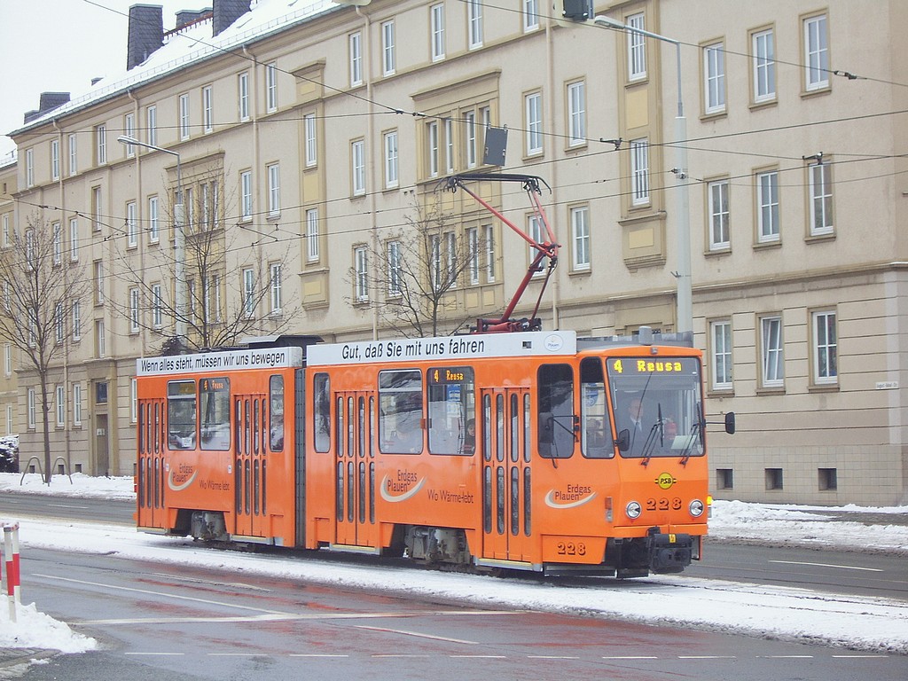 Tw 228 in Richtung Tunnel auf der August-Bebel-Straße - 14.02.2009. |