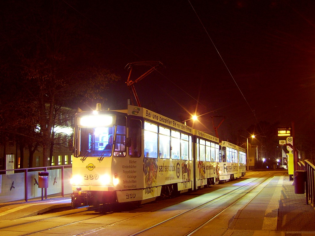 auch am Abend bis in die Nacht Straßenbahnen unterwegs. Bis 01:30 bzw.