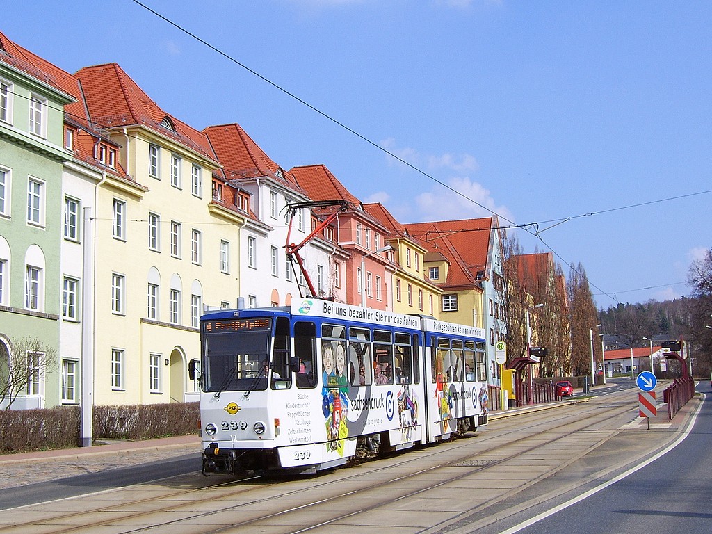 Am Freitagmorgen vergangener Woche (15.10.) kam es gegen 08:00 Uhr zu einem Auffahrunfall zwischen einer Straßenbahn und einem Pkw. Ein Skoda-Fahrer hielt auf der August-Bebel-Straße zum Wenden verkehrsbedient an. Dies erkannte jedoch der 45-jährige Fahrer der Richtung Albertplatz fahrenden Bahn zu spät und fuhr auf. Es entstand insgesamt ein Sachschaden von ca. 3.000 Euro. |