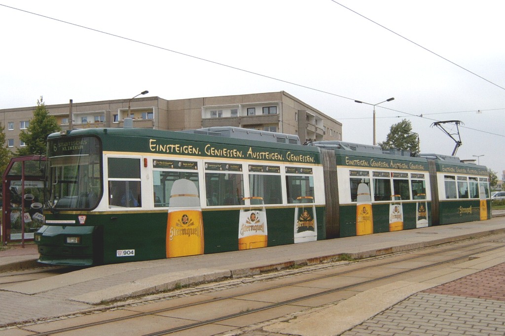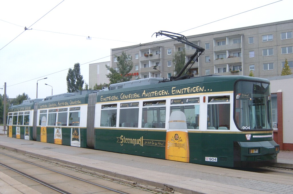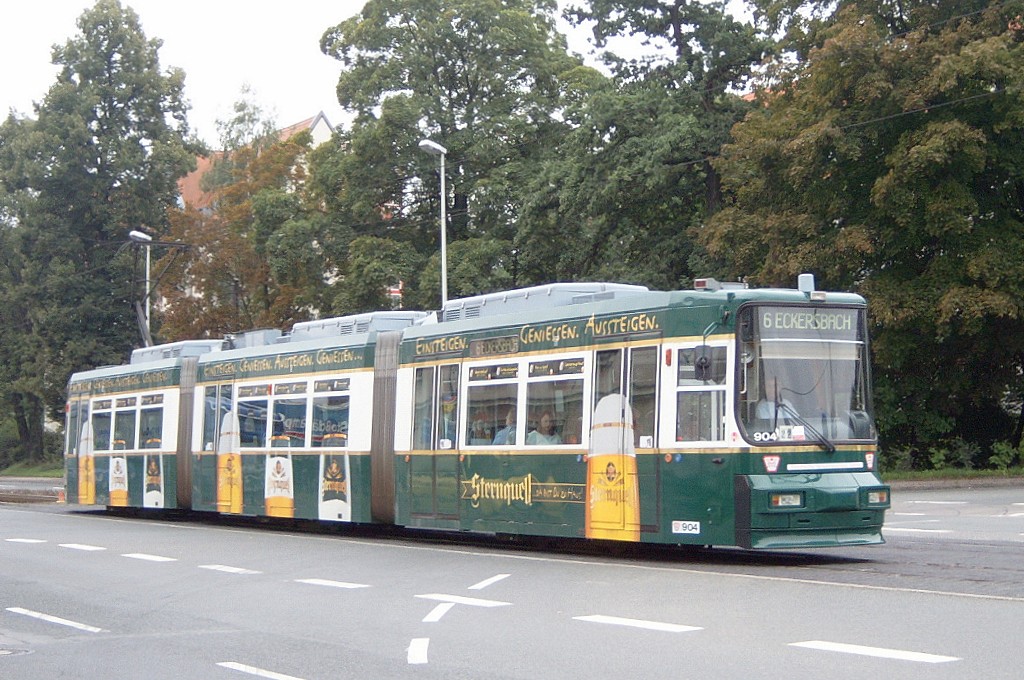 Tw 904 abfahrbereit zum Städtischen Klinikum an der Endhaltestelle Eckersbach. |