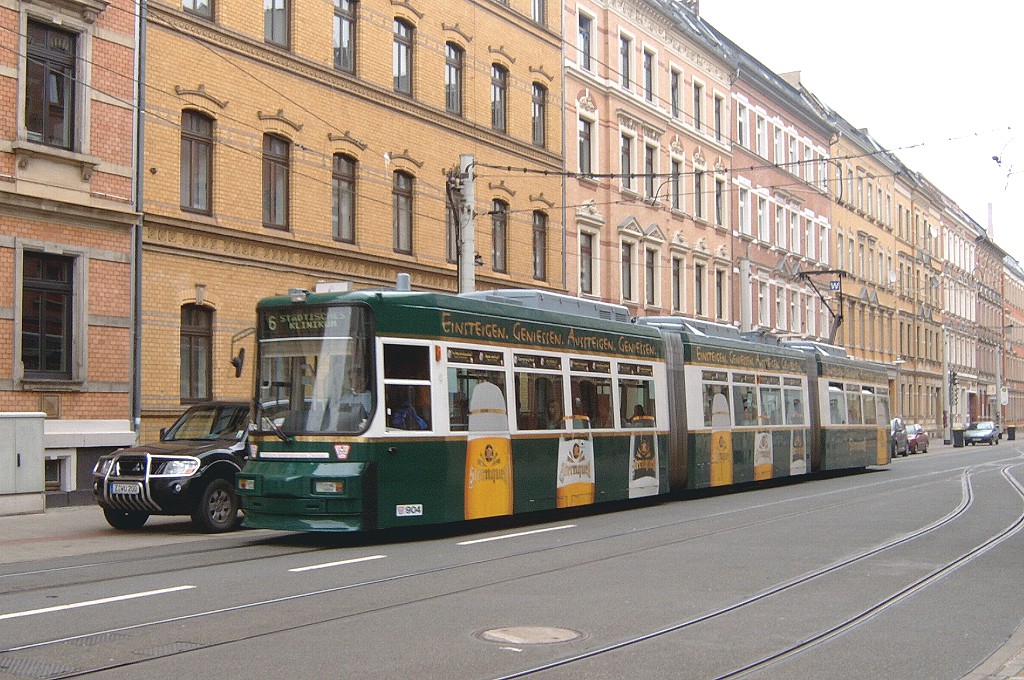 Tw 904 befährt die Talstraße und erreicht in Kürze die gleichnamige Haltestelle. |