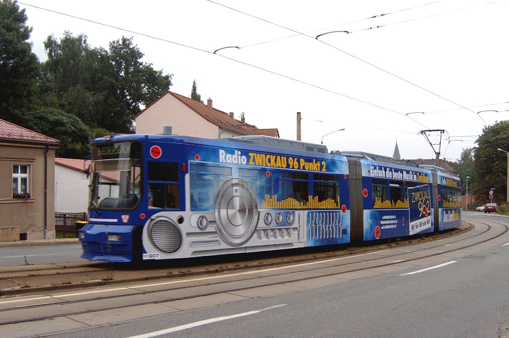 Tw 907 nach der Wendeschleife Eckersbach an der Sternenstraße. |