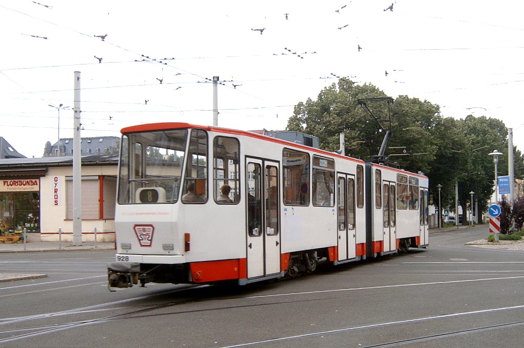 Tw 928 verlässt den Neumarkt auf der Linie 8 nach Pölbitz. |