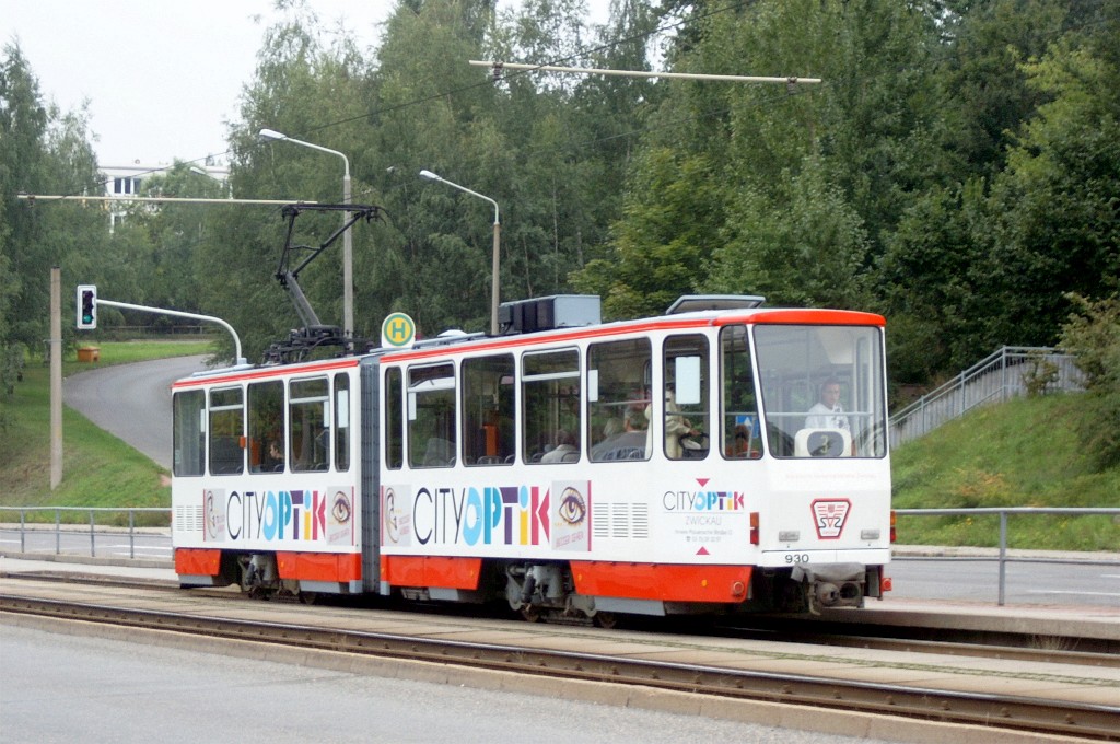 Tw 930 stadteinwärts an der Haltestelle Westsächsische Hochschule. |