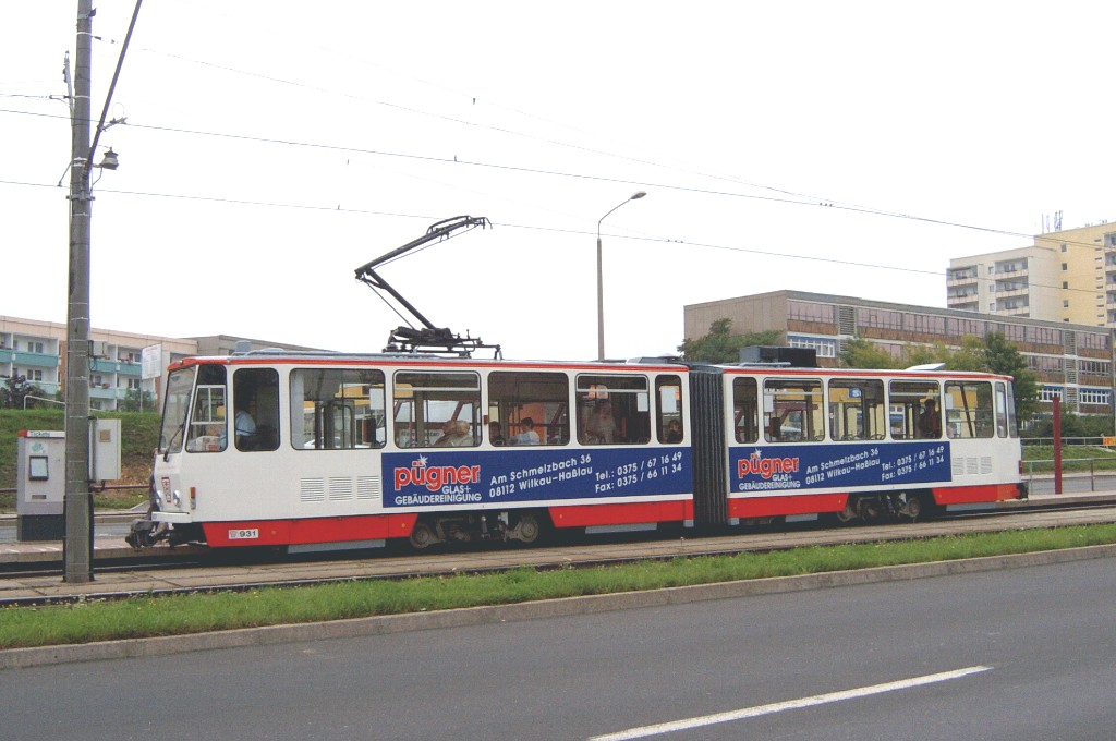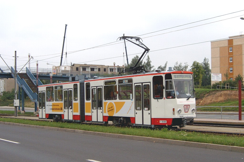 Tw 936 auf der Scheffelstraße zwischen den Haltestellen Westsächsische Hochschule und Talstraße. |