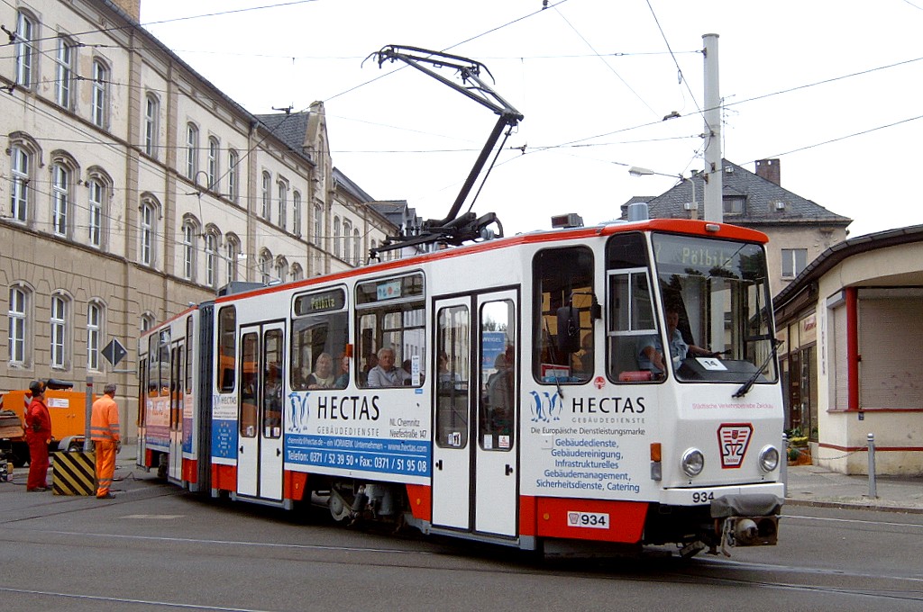 Tw 936 in Richtung Eckersbach an der Haltestelle Neumarkt. |