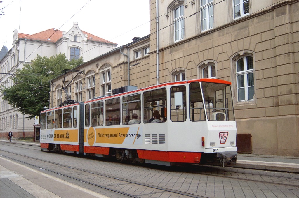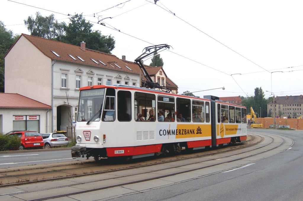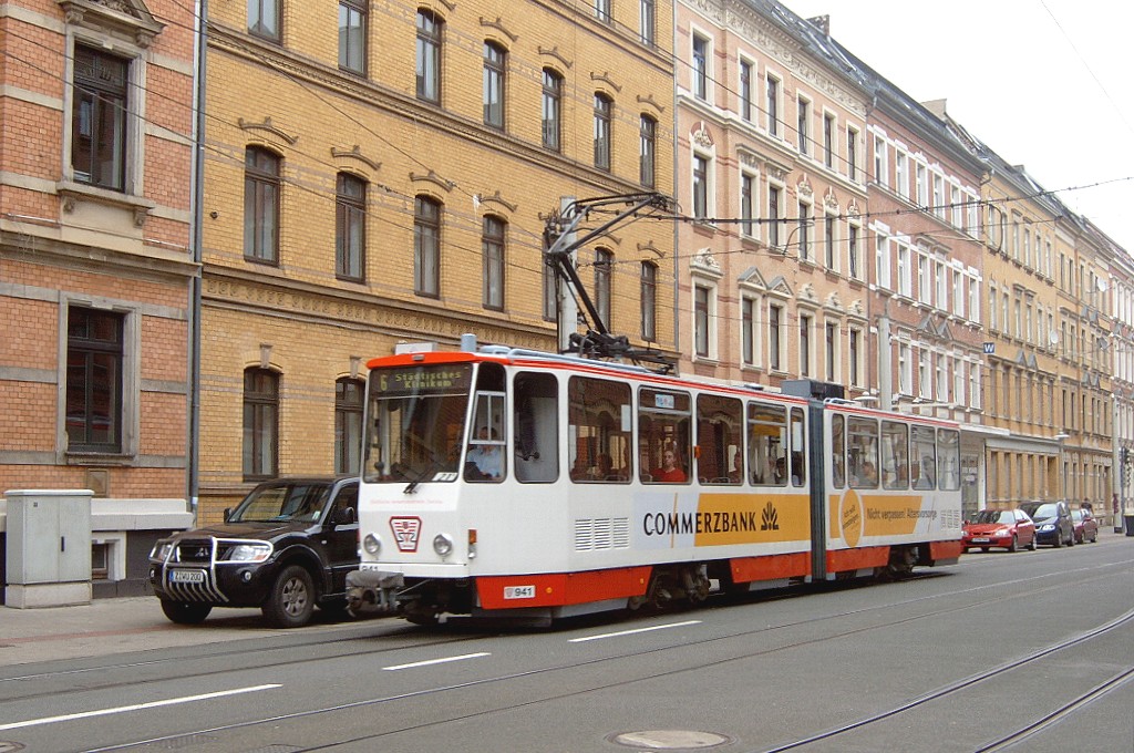 Tw 941 befährt die Scheffelstraße zwischen Talstraße und Westsächsischer Hochschule. |